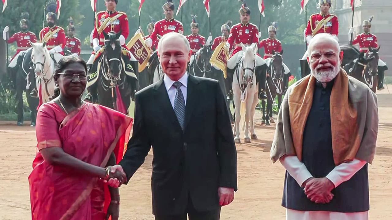 रूसी राष्ट्रपति पुतिन राष्ट्रपति भवन पहुंचे। उन्होंने राष्ट्रपति मुर्मू और PM मोदी से पहले राष्ट्रपति के सैन्य सचिव, मेजर जनरल वूदेव परिदा से हाथ मिलाया। इस घटना का वीडियो वायरल हुआ और लोगों ने पुतिन के इस व्यवहार की प्रशंसा की।