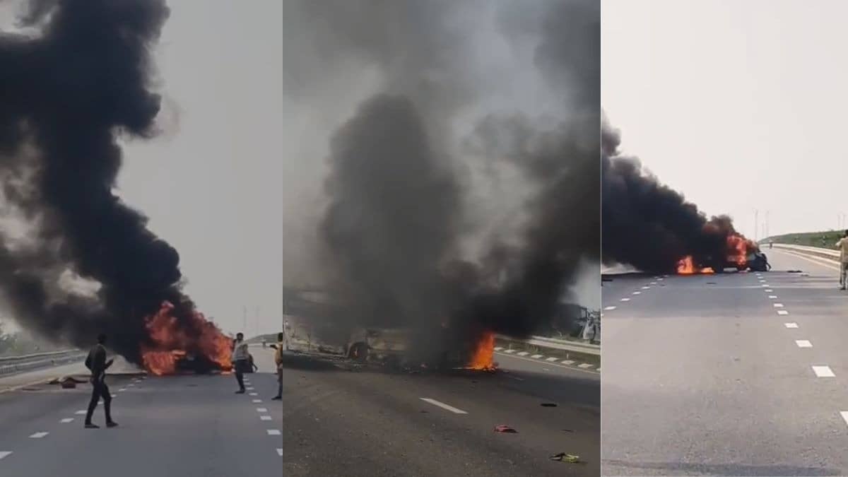 UP: बाराबंकी में भीषण सड़क हादसा, ब्रेजा ने खड़ी दूसरी कार में मारी टक्कर, धू-धू कर जल उठी दोनों गाड़ी, 5 लोगों की मौके पर मौत, VIDEO