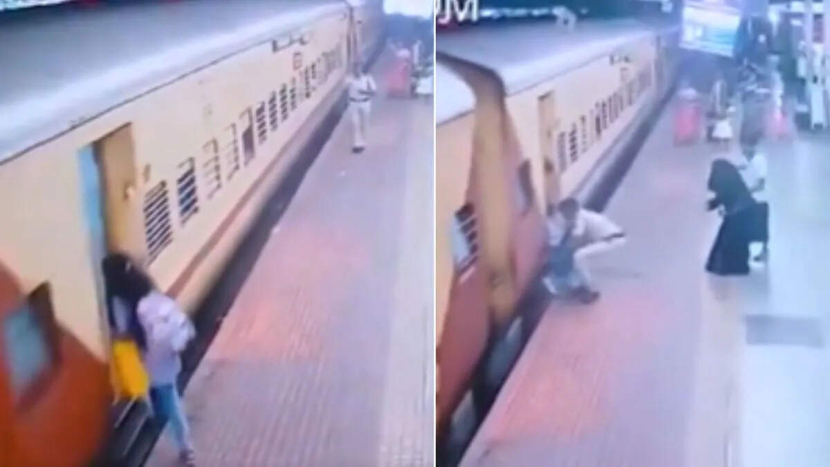 चलती ट्रेन पर चढ़ने के प्रयास में फिसलकर गिरी महिला, तभी दौड़कर आया RPF का जांबाज और सूझबूझ से बचाई जान