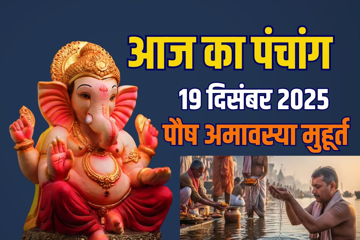 Aaj Ka Panchang (आज का पंचांग), 19 December 2025: आज पौष अमावस्या के साथ शुक्रवार व्रत और लक्ष्मी पूजा है. पौष अमावस्या पर स्नान, तर्पण, श्राद्ध, दान करने से पितर खुश होते हैं. आज लक्ष्मी पूजा का भी सुंदर संयोग बना है. पंचांग के अनुसार आज पौष कृष्ण अमावस्या तिथि, ज्येष्ठा नक्षत्र, चतुष्पाद करण, शूल योग, पश्चिम का दिशाशूल है. पंचांग से देखें आज के सभी मुहूर्त, राहुकाल और अशुभ समय.