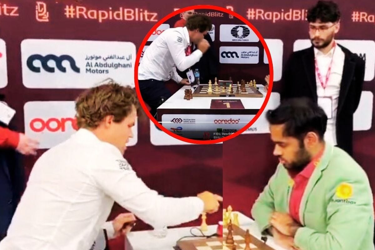Magnus Carlsen slams table again: विश्व ब्लिट्ज चैंपियनशिप में भारत के अर्जुन एरिगैसी ने मैग्नस कार्लसन को हराकर सनसनी मचा दी. हार के बाद कार्लसन ने अपना आपा खो दिया और टेबल पर हाथ मारा, वीडियो वायरल हुआ.
