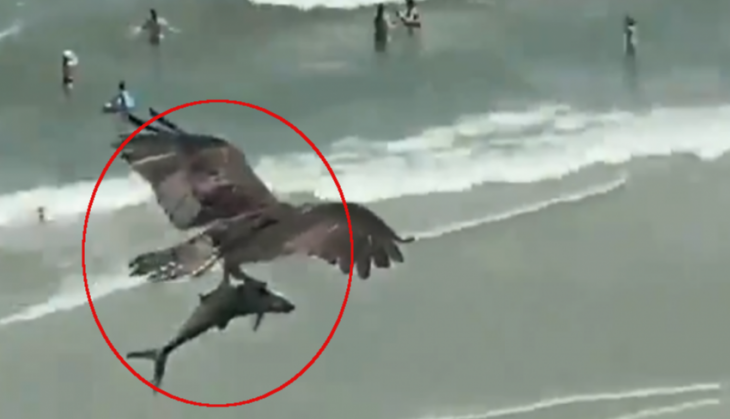 विशाल शार्क को समुद्र से उठाकर आसमान में उड़ गया पक्षी, कैमरे में कैद हुआ अद्भुत नजारा