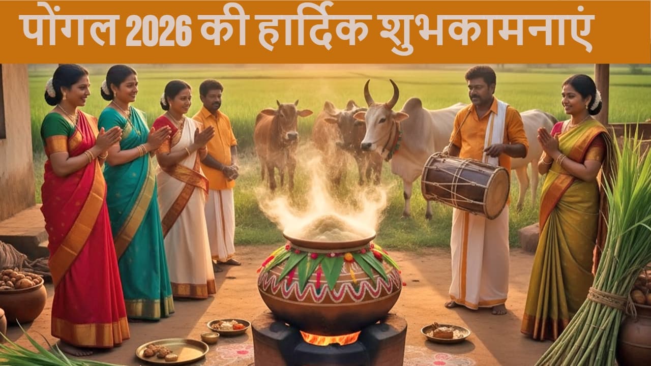 Pongal 2026 Wishes in Hindi: पोंगल तमिलनाडु का प्रमुख उत्सव, 14 से 17 जनवरी 2026 तक मनाया जाएगा। इस समय तमिल परिवार स्वादिष्ट पोंगल बनाकर सूर्य देव को अर्पित करते हैं। इस खास मौके पर अपने प्रियजनों को यहां से भेजें पोंगल की हार्दिक शुभकामनाएं।