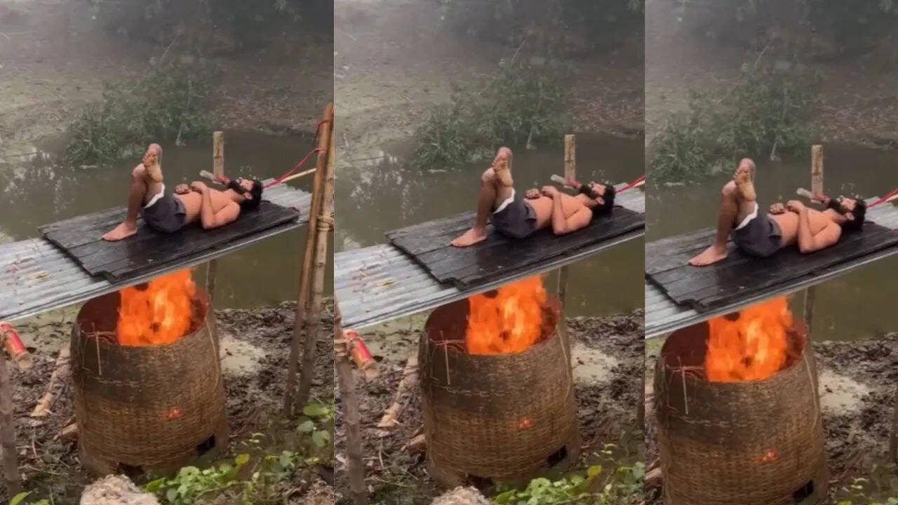 OMG: ठंड से बचने के लिए दहकती आग पर ही लेट गया युवक, वीडियो देख यूजर्स बोले - 'सिर्फ लाइक्स की भूख