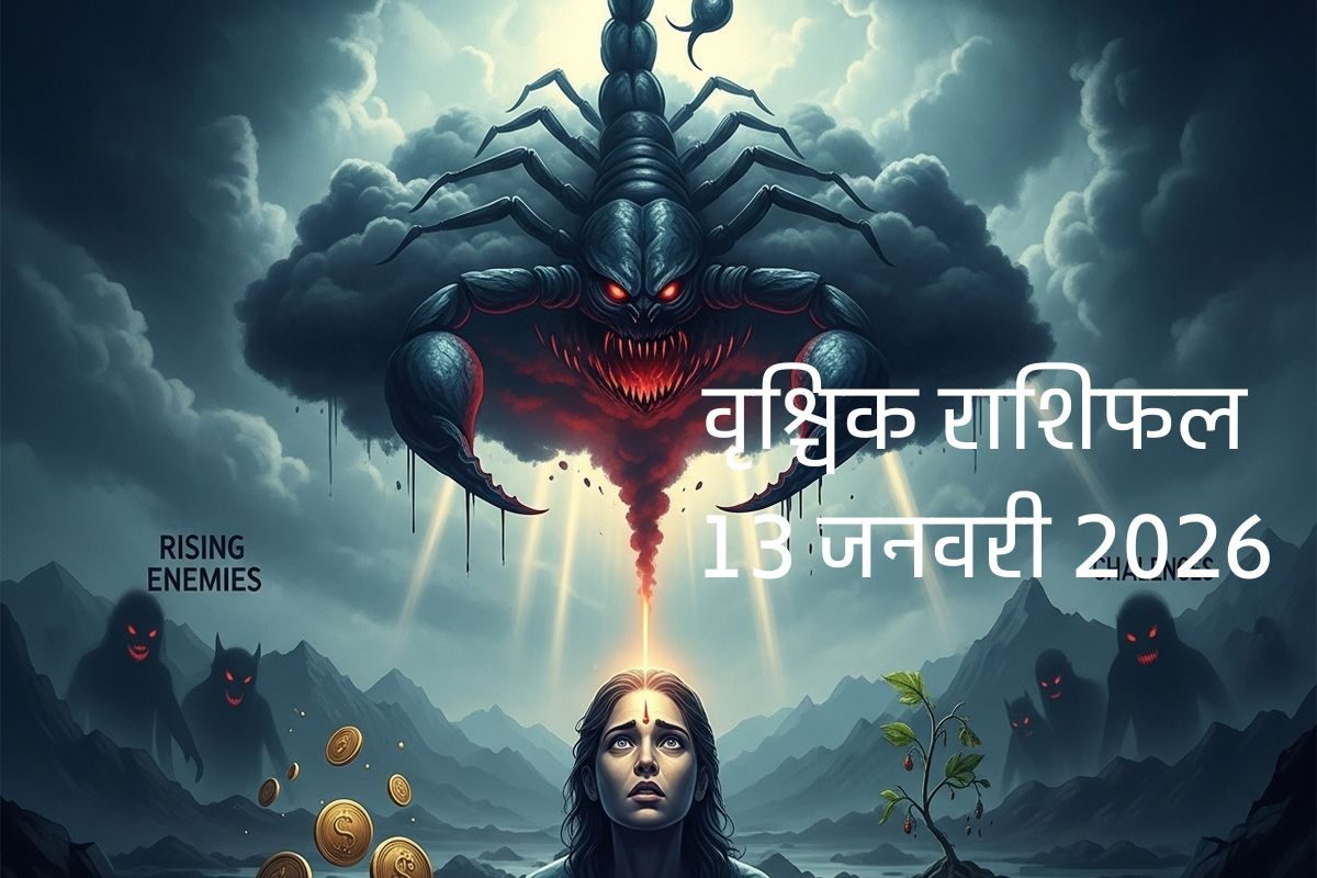 Aaj ka Vrishchik Rashifal 13 January: मकर संक्रांति से ठीक पहले मंगलवार 13 जनवरी 2026 वृश्चिक राशि वालों के लिए अशुभ संयोग ला रहा है. दरभंगा के प्रसिद्ध ज्योतिषाचार्य डॉ. कुणाल कुमार झा ने बताया कि माघ कृष्ण दशमी तिथि पर सूर्य द्वितीय भाव में भयाक्रांत कारक योग बना रहा है. शनि का मीन राशि में पंचमस्थ गोचर धन-पूत्र ह्रास का संकेत दे रहा है. जानिए राशिफल और उपाय.