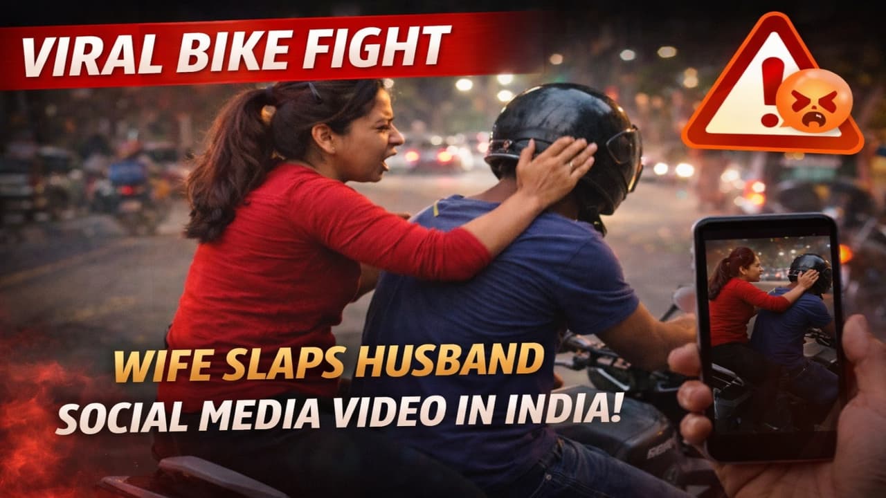 Viral Video Alert: बाइक पर पत्नी ने पति को 14 थप्पड़ मारे! युवक शांत, वीडियो वायरल-क्या यह सिर्फ मनोरंजन है या घरेलू कलेश का सच? सोशल मीडिया पर हर कोई हैरान, लोगों ने अलग-अलग रिएक्शन दिए।