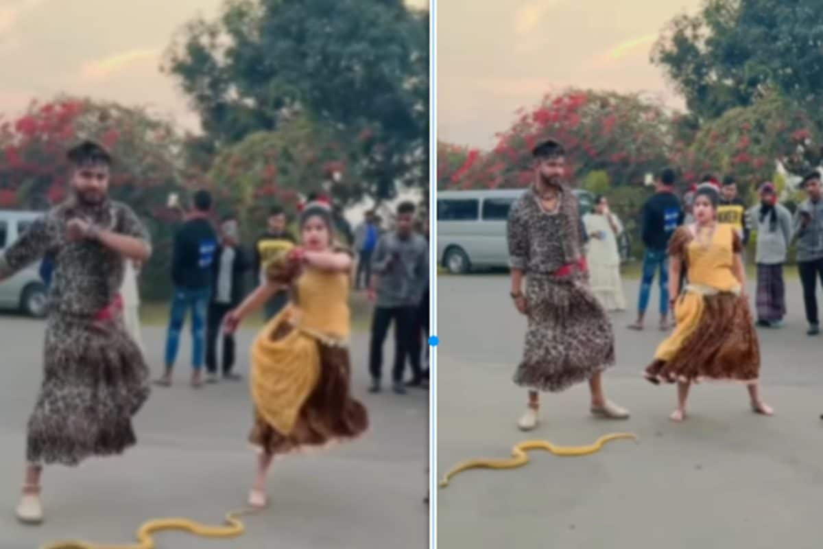 सोशल मीडिया पर एक नाग और नागिन का डांस वीडियो काफी वायरल हो रहा है. दोनों ने सड़क पर इच्छाधारी नाग और नागिन के गेटअप में जब डांस करना शुरू किया, तो उन्हें देखने के लिए लोगों की भीड़ जमा हो गई.