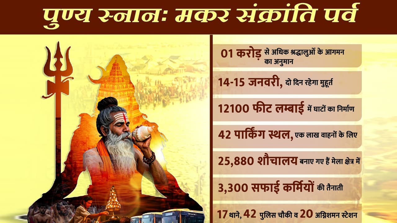 प्रयागराज माघ मेले में 15 जनवरी को मकर संक्रांति का दूसरा स्नान पर्व होगा। एक करोड़ से अधिक श्रद्धालुओं के अनुमान को देखते हुए प्रशासन ने भीड़ प्रबंधन, सुरक्षा, स्वच्छता और एआई आधारित निगरानी के व्यापक इंतजाम किए हैं।