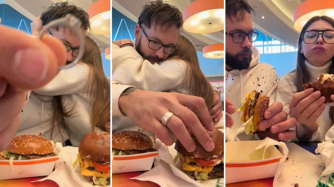 रोमांटिक प्रपोजल में आया गजब का ट्विस्ट! बर्गर के साथ सगाई की अंगूठी निगल गई लड़की, वीडियो वायरल