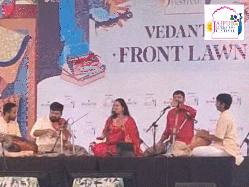 जयपुर लिटरेचर फेस्टिवल (JLF) की शुरुआत गुरुवार को ‘मॉर्निंग म्यूजिक: नाद- बिटवीन साउंड एंड साइलेंस' से हुई। इसमें ऐश्वर्या विद्या रघुनाथन ने शास्त्रीय संगीत की प्रस्तुति दी। होटल क्लार्क्स आमेर में चल रहे JLF में दुनियाभर से 500 से ज्यादा राइटर्स शामिल होंगे। आज का आकर्षण बॉलीवुड गीतकार और स्क्रिप्ट राइटर जावेद अख्तर का 'जावेद अख्तर: पॉइंट्स ऑफ व्यू' सेशन है। सेशन में उनके साथ वरीशा फरासत बातचीत करेंगी। इसमें जावेद अख्तर कविता, सिनेमा और समाज पर बोलेंगे। 'फर्स्ट एडिशन: ओल्डर बोल्डर बाय अमन नाथ' सेशन में बॉलीवुड की दिग्गज एक्ट्रेस जीनत अमान और फेस्टिवल प्रोड्यूसर संजॉय के. रॉय किताब लॉन्च करेंगे। 'द अनडाइंग लाइट: इंडियाज फ्यूचर्स' सेशन में गोपाल कृष्ण गांधी से नारायणी बसु बातचीत करेंगी। फेस्टिवल में 5 दिन तक टेक्नोलॉजी, साहित्य, राजनीति, खेल, इतिहास, सिनेमा, ग्लोबल अफेयर्स जैसे विषयों पर डिस्कशन होंगे। बांग्लादेश और वेनेजुएला के हालिया घटनाक्रम पर भी चर्चा होगी। 15 से 17 जनवरी तक म्यूजिक स्टेज होगा, जिसमें अलग-अलग तरह के म्यूजिक की परफॉर्मेंस होगी। देखिए, JLF की PHOTOS... JLF की पल-पल की अपडेट के लिए ब्लॉग पढ़िए...