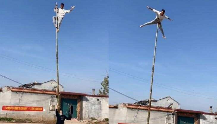 युवक के कंधे पर रखे बांस पर चढ़कर दूसरे युवक ने किए ऐसे करतब, वीडियो देख हैरान रह जाएंगे आप