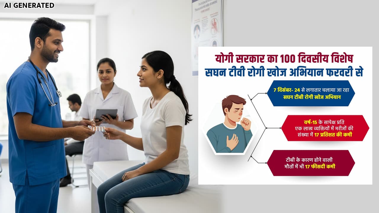 उत्तर प्रदेश में योगी सरकार फरवरी से 100 दिवसीय सघन टीबी रोगी खोज अभियान शुरू कर रही है। जनभागीदारी, स्क्रीनिंग और जागरूकता के जरिए अधिक मरीजों की पहचान कर इलाज सुनिश्चित किया जाएगा। टीबी से मौतों में पहले ही 17% की कमी आई है।