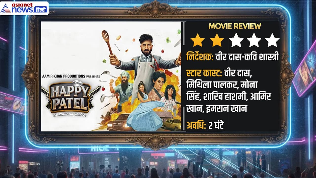 डायरेक्टर वीर दास-कवि शास्त्री की फिल्म हैप्पी पटेल खतरनाक जासूस शुक्रवार को सिनेमाघरों में रिलीज हुई। फिल्म रिव्यू आ गया है। इस स्पाई-कॉमेडी में वीर दास और मिथिला पालकर के साथ मोना सिंह, शारिब हाशमी और सृष्टि तावड़े भी नजर आ रहे हैं।