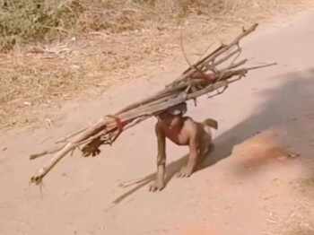 घुटनों के बल चलकर सिर पर लकड़ी लेकर आया अपाहिज बच्चा, वीडियो देख रोने लग जाएगा दिल