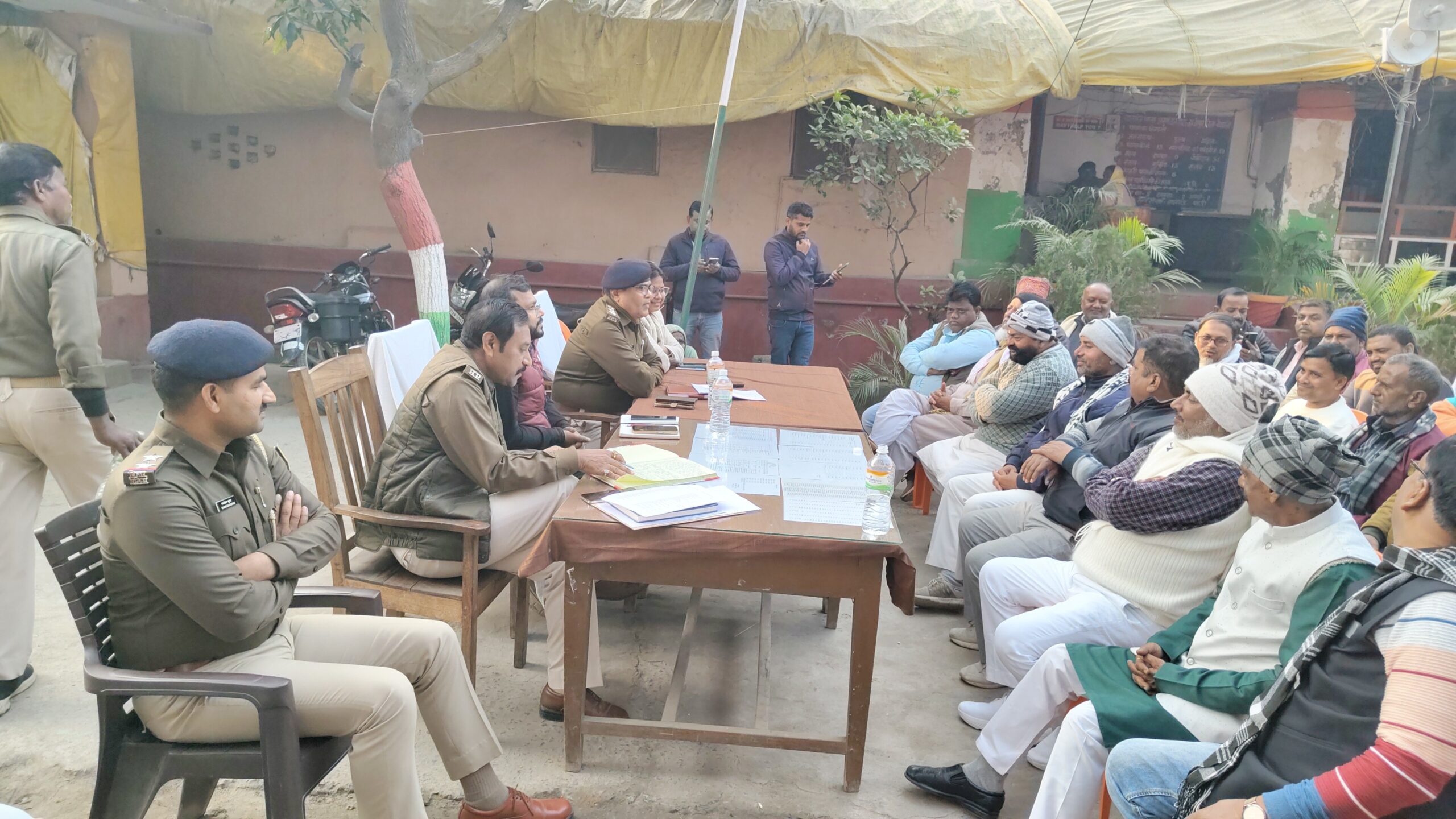 सरस्वती पूजा को लेकर लालगंज थाना परिसर में शनिवार को शांति समिति की बैठक आयोजित की गयी