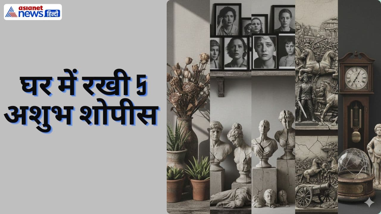 Inauspicious Items: वास्तु शास्त्र के अनुसार घर में रखी कुछ शोपीस नकारात्मक ऊर्जा बढ़ाती हैं। टूटी मूर्तियां, हिंसा दर्शाने वाली वस्तुएं, सूखे फूल और बंद घड़ी गरीबी, तनाव और बर्बादी का कारण बन सकती हैं। जानें ऐसी 5 चीजें जिन्हें तुरंत हटाना शुभ है।