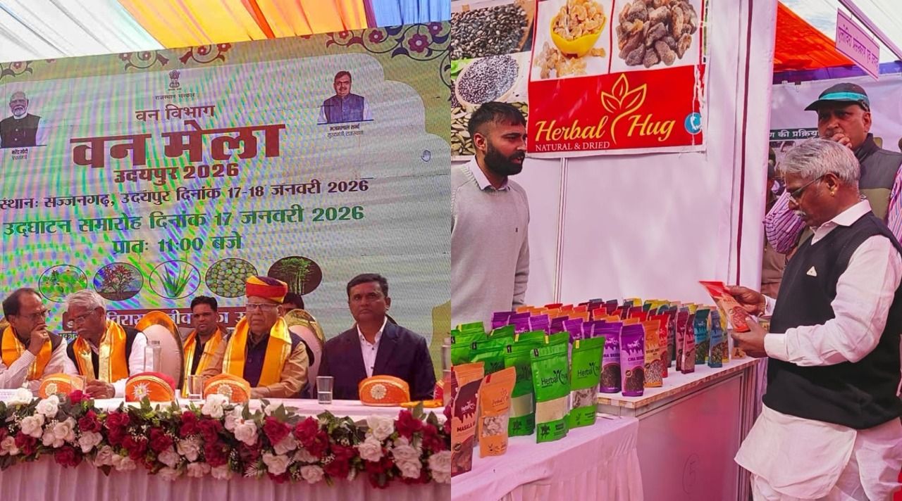 Rajasthan News: उदयपुर के सज्जनगढ़ में शनिवार को दो दिवसीय वन मेले का आगाज हुआ. इस मेले का उद्देश्य वन उत्पादों को बढ़ावा देना और ग्रामीण समुदाय की आय के अवसर बढ़ाना है. वन विभाग द्वारा आयोजित कार्यक्रम का उद्घाटन जनजाति क्षेत्रीय विकास विभाग मंत्री बाबूलाल खराड़ी ने फीता काटकर किया. मेले में जिले और आसपास के इलाकों से आए वन उत्पादकों ने अपने-अपने स्टॉल लगाए. यहां महुआ, शहद, औषधीय पौधों और अन्य वन आधारित वस्तुओं की झलक देखने को मिली.