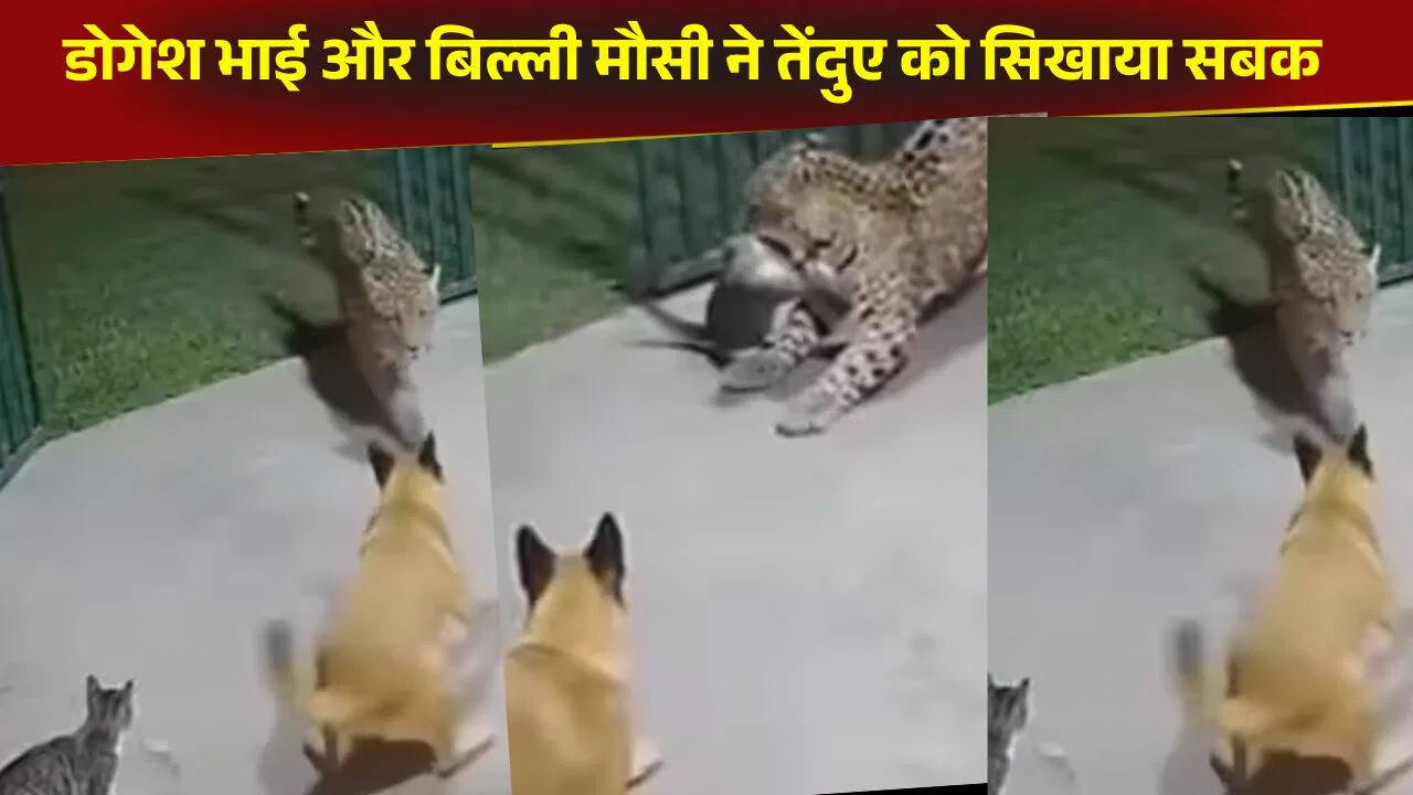 तेंदुए ने किया कुत्ते पर हमला तो जान बचाने पहुंची बिल्ली, ऐसे की खूंखार दरिंदे से फाइट