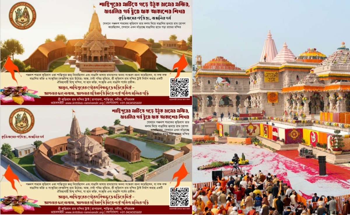 नादिया के शांतिपुर में कृतिबास ओझा की रामायण से प्रेरित ‘बंगाली राम’ थीम पर भव्य राम मंदिर बनाने की तैयारी शुरू हो गई है. 15 बीघा भूमि पर 100 करोड़ की लागत से बनने वाला यह मंदिर 2028 तक तैयार किया जाएगा.