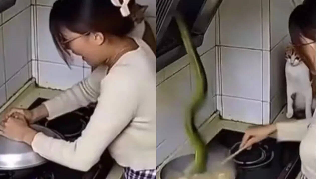 किचन में अचानक ‘मौत’ ने ली एंट्री, घबराई महिला ने जल्दबाजी में किया ये काम