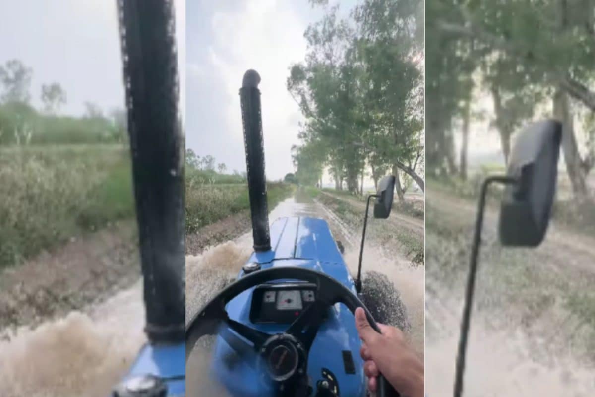 नहर के तेज बहाव के बीच एक शख्स ने ऐसा कारनामा कर दिखाया कि देखने वालों की सांसें थम गईं. पानी से भरी नहर में उसने बेखौफ होकर ट्रैक्टर उतार दिया और हैरानी की बात यह रही कि वह पूरे समय एक हाथ से ही स्टीयरिंग संभालता नजर आया। तेज पानी, डूबते टायर और खतरनाक हालात के बावजूद शख्स का कॉन्फिडेंस देखते ही बनता था. इस जोखिम भरे स्टंट का वीडियो सोशल मीडिया पर तेजी से वायरल हो रहा है. लोग इसे हिम्मत बता रहे हैं तो कुछ इसे बड़ी लापरवाही कह रहे हैं, लेकिन इतना तय है कि यह नजारा हर किसी को हैरान कर रहा है.