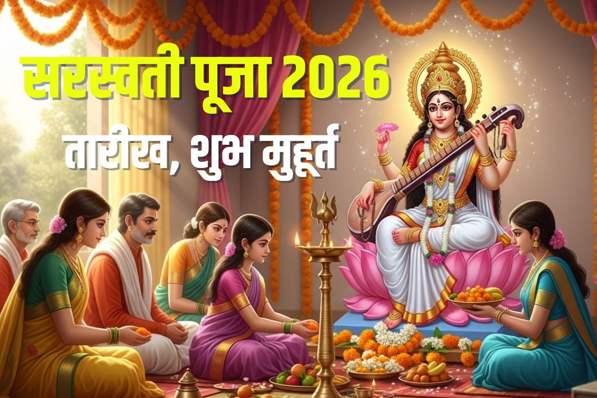 Saraswati Puja 2026 Kab Hai Date: सरस्वती पूजा वसंत पंचमह को होती है. हिंदू कैलेंडर में इसके लिए माघ शुक्ल पंचमी तिथि का निर्धारण किया गया है क्योंकि इस तिथि को माता सरस्वती का प्रकाट्य हुआ था. इस बार सरस्वती पूजा पर 3 शुभ योग और पंचक है. ज्योतिषाचार्य से जानते हैं कि सरस्वती पूजा कब है? सरस्वती पूजा की तारीख कैसे तय होती है?