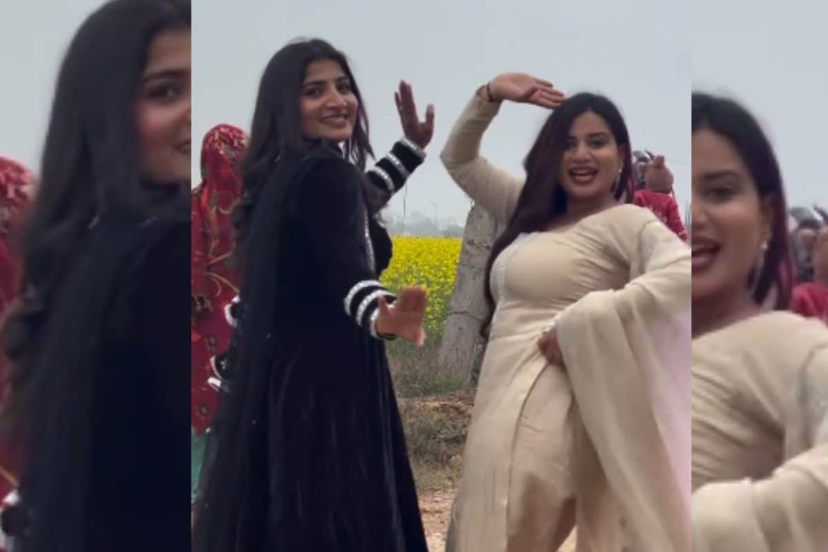 सरसों के खेतों के बीच देसी गाने पर झूमीं लड़कियां, काले सूट में मचाया तहलका, कमर देख लड़के हुए फिदा!