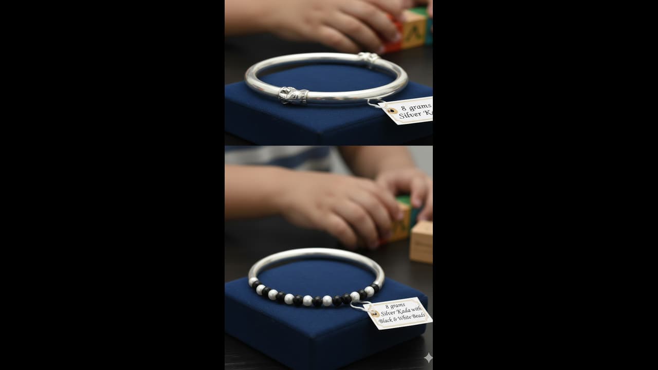 8gm Silver Kada Designs: अगर आपका लाडला 5 साल का होने वाला है, तो उसे गिफ्ट में सिल्वर कड़ा दे सकते हैं। सिल्वर कड़ा ना सिर्फ उसके सेहत के लिए ठीक रहेगा, बल्कि एक क्यूट सा लुक भी क्रिएट करेगा। यहां दिखाते हैं, 6 डिजाइंस।