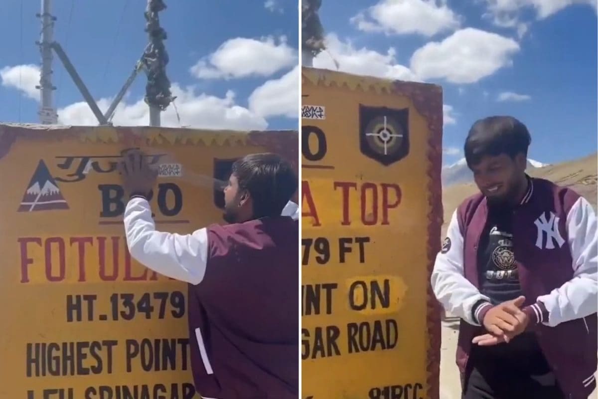 13 हजार फीट की ऊंचाई पर पहुंचा शख्स, साइन बोर्ड पर चिपकाई ऐसी चीज, लोग बोले- 'इसको तुरंत जेल भेजो!'