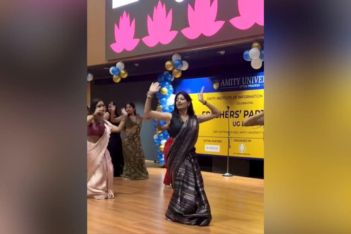 इंस्टाग्राम पर हाल ही में एक वीडियो पोस्ट किया गया है जिसमें कॉलेज की छात्राएं फ्रेशर फंक्शन में डांस करती नजर आ रही हैं. ये वीडियो नोएडा के अमिटी यूनिवर्सिटी में 29 सितंबर 2025 को हुए फ्रेशर फंक्शन का है. छात्राएं साड़ी पहनकर हरियाणवी गाने '52 गज का दामन' पर डांस कर रही हैं. उनकी अदाएं, डांसिंग मूव्स और कोऑर्डिनेशन लोगों को भा रहा है. मगर सबकी नजरें बीच वाली लड़की पर अटकी हैं, जिनके एक्सप्रेशन और डांस कमाल के हैं. लड़की का नाम सुहानी पंत है जिन्होंने अपने इंस्टाग्राम अकाउंट @suhanipant29 पर ये वीडियो पोस्ट किया था जो तेजी से वायरल हो रहा है. वीडियो को 19 लाख से ज्यादा व्यूज मिल चुके हैं और कई लोग कमेंट कर के उनके डांस की तारीफ भी कर रहे हैं. (नोट: अगर यूजर को इस वीडियो के इस्तेमाल से आपत्ति है तो वो न्यूज18 हिन्दी को संपर्क कर सकते हैं.)