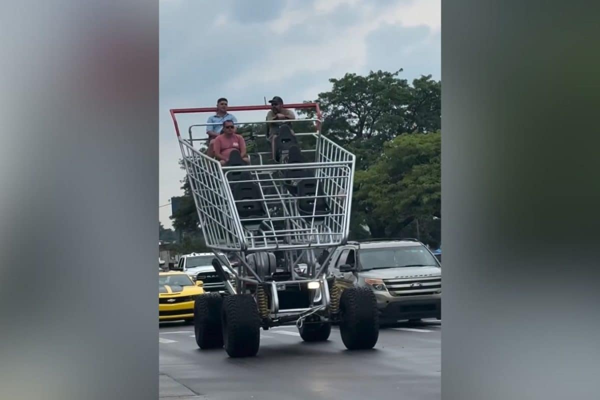 रोड पर चलती दिखी सुपरमार्केट की विशाल ट्रॉली, ऊपर बैठकर ड्राइव करते दिखे लोग, देखने वाले रह गए दंग!