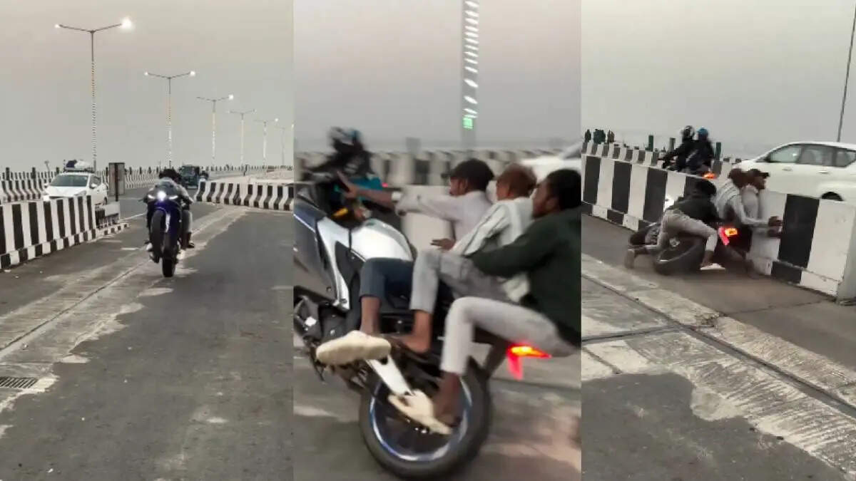 बाइक पर हीरोगिरी दिखाना युवकों को पड़ा भारी, डिवाइडर से बुरी तरह टकराए, VIDEO देख लोग बोले- 1 नंबर के छपरी