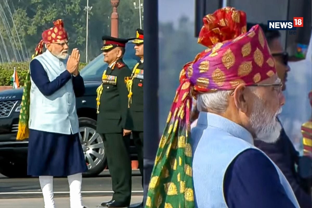 PM Modi Republic Day look: गणतंत्र दिवस 2026 के मौके पर पीएम नरेंद्र मोदी का 'देसी' अंदाज एक बार फिर सुर्खियों में है. नीले कुर्ते और आसमानी जैकेट के साथ प्रधानमंत्री ने इस बार लाल रंग की मल्टी-कलर पगड़ी पहनी, जिस पर गोल्डन बूटी और बंधेज का खूबसूरत काम है. सांस्कृतिक विरासत और विविधता का संदेश देने वाला पीएम का यह खास लुक, भारतीय परंपराओं के प्रति उनके गहरे लगाव को दर्शाता है.