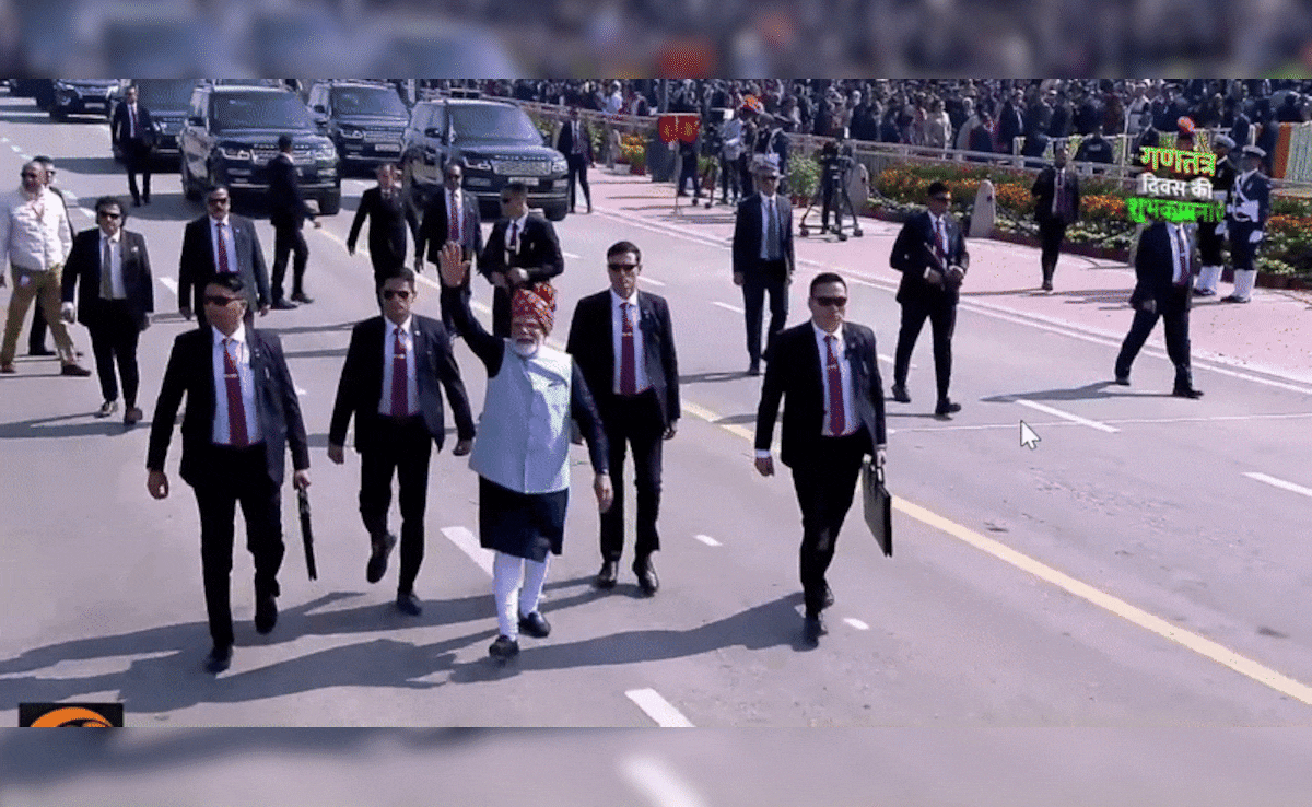 मरून पगड़ी,कदमों में जोश, आकर्षक लुक, परेड के समापन पर पैदल चलते हुए पीएम मोदी ने जीता लोगों का दिल