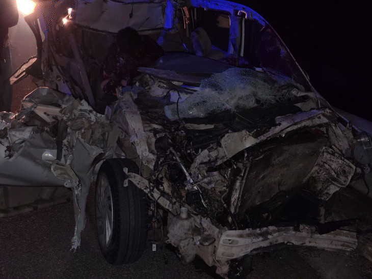 दिल्ली-मुंबई एक्सप्रेसवे पर ट्रक में घुसी कार, चार की मौत:8KM तक गाड़ी घिसटती चली गई, उज्जैन महाकाल के दर्शन कर नोएडा लौट रहे थे