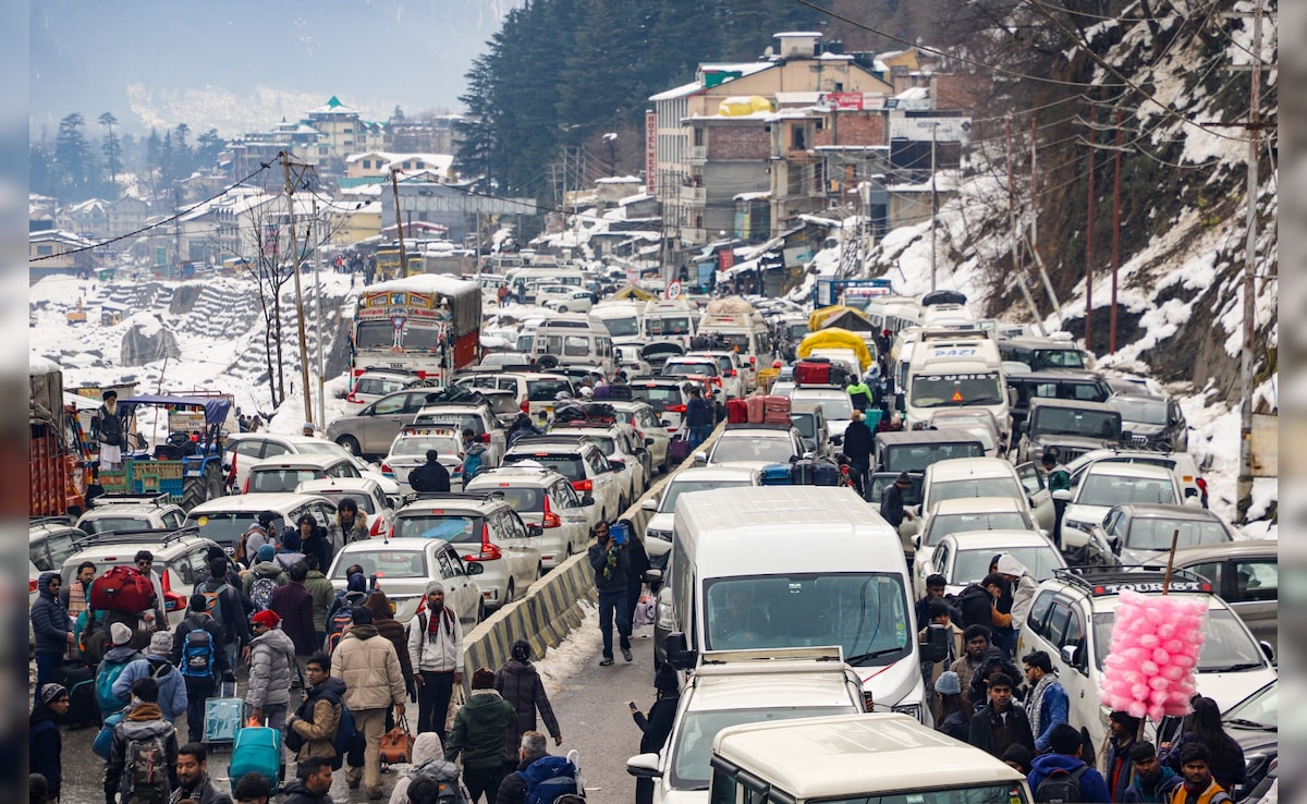 मनाली में फिर महाजाम! बारिश और बर्फबारी से फिर आफत की आहट, बसों की नो एंट्री, अभी भी रेंग रहीं कारें
