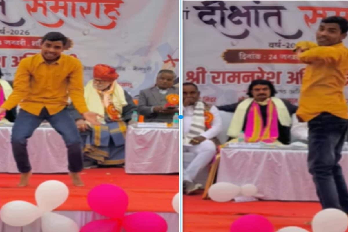 सोशल मीडिया पर एक कॉलेज के दीक्षांत समारोह का वीडियो खूब वायरल हो रहा है. स्टेज पर कई गेस्ट्स बैठे नजर आए. इनके सामने जब पीले रंग की शर्ट पहने एक लड़के ने गुरु रंधावा के सांग अज़ूल पर नाचना शुरू किया, तो सबके होश उड़ गए. लड़के के स्टेप्स तो अच्छे थे लेकिन डांस में फिनिशिंग नजर नहीं आई. साथ ही अभी तक ज्यादातर इस गाने पर लड़कियों को ही डांस करते देखा गया है, ऐसे में लड़के के डांस ने गेस्ट्स को भी हैरान कर दिया. आप भी देखिये वीडियो...