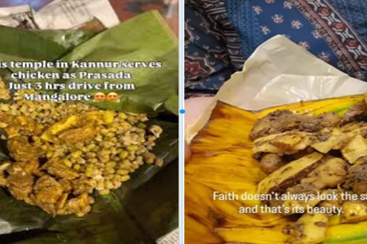 क्या आप जानते हैं कि भारत के केरल राज्य के कन्नूर में स्थित श्री थिरुवरक्कट्टू भगवती मंदिर में देवी को भोग के तौर पर पेपर चिकन चढ़ाया जाता है. माता को भोग लगाने के बाद इसे भक्तों के बीच प्रसाद के तौर पर बांटा जाता है. मंदिर का ये प्रसाद अपने आप में अनोखा है क्यूंकि हिंदू धर्म के मुताबिक, नॉन वेज को पूजा पाठ से दूर रखा जाता है. हालांकि, ऐसे अन्य कई मंदिर हैं, जहां माता को नॉन वेज का भोग लगता है. इसमें वेस्ट बंगाल के कुछ मंदिर भी शामिल हैं, जिसमें मछली का भोग लगता है. सोशल मीडिया साइट इंस्टाग्राम पर @nischitha_deepak नाम से बने अकाउंट पर इन्फ़्लुएशनर ने इस भोग के साथ वीडियो शेयर कर लोगों को इसकी जानकारी दी.