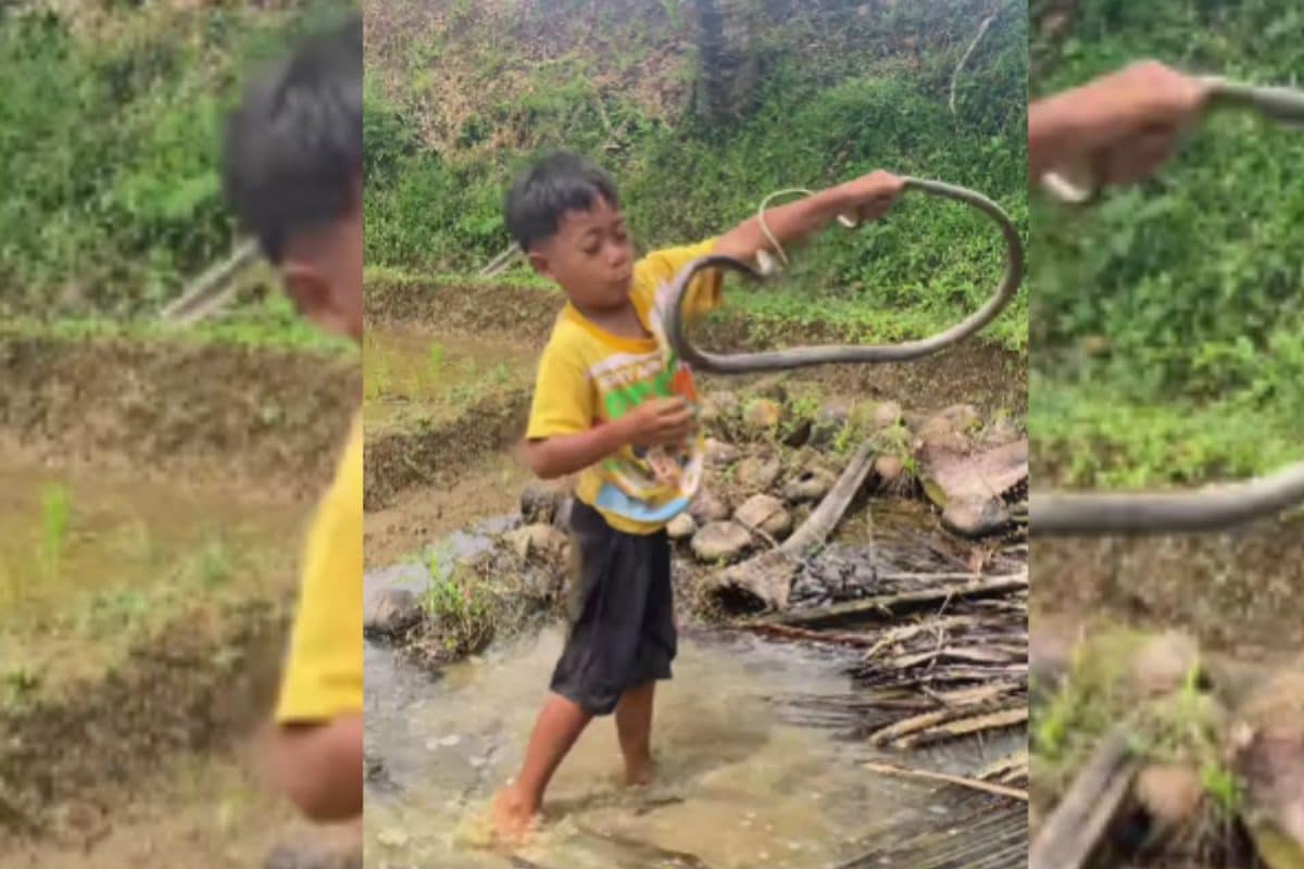 खेत में तेजी से भाग रहा था सांप, बच्चे ने चुटकी में पकड़ बना दिया खिलौना, देख सांसें थम जाएंगी!