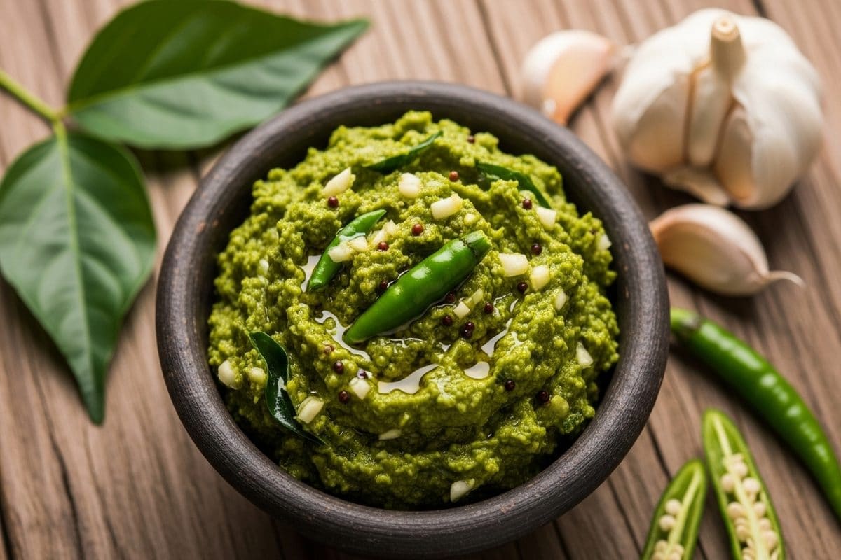महाराष्ट्र की ढेंचा चटनी लहसुन, हरी मिर्च और मूंगफली के देसी स्वाद के लिए मशहूर है, जो भाखरी, बाजरा रोटी या दाल‑चावल के साथ धमाकेदार लगती है.
