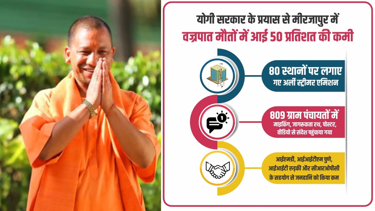 योगी सरकार की वैज्ञानिक रणनीति से मीरजापुर में आकाशीय बिजली से होने वाली मौतों में 50 प्रतिशत की कमी आई है। लाइटनिंग हॉटस्पॉट मैप, आधुनिक अरेस्टर और व्यापक जागरूकता अभियान ने जिले को देश का मॉडल बना दिया है।