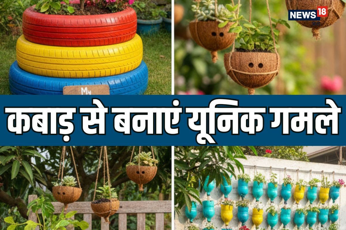 DIY Garden Pots From Waste Material : घर सजाने के लिए महंगे गमले खरीदने की ज़रूरत नहीं! आप घर में पड़ी बेकार चीज़ों जैसे प्लास्टिक की बोतलें, पुराने टायर, और रसोई के डिब्बों से शानदार और आकर्षक पॉट्स बना सकते हैं. जीरो बजट में अपने बगीचे को 'यूनिक' लुक देने के बेहतरीन DIY गार्डनिंग हैक्स और टिप्स यहाँ पढ़ें.