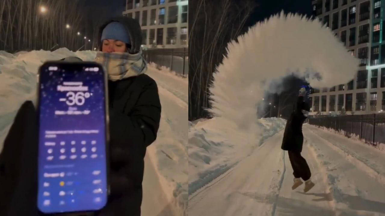 कड़ाके की ठंड का चौंकाने वाला प्रयोग, माइनस 36 डिग्री में गर्म पानी हवा में ही बन गया बर्फ, देखे वायरल वीडियो