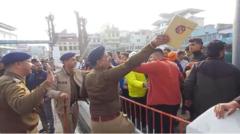 उत्तराखंड के कोटद्वार में शनिवार को बजरंग दल के कार्यकर्ताओं ने एक जिम के सामने जमकर नारेबाज़ी और हंगामा किया.