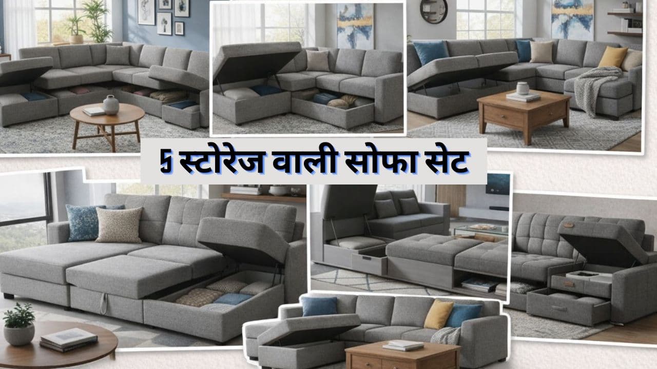 5 Seater Sofa With Storage: लिविंग रूम में जगह की कमी से परेशान हैं? सीट, एल-शेप, पुल-आउट, सोफा-कम-बेड और आर्म-स्टोरेज वाले सोफा सेट बैठने के साथ सामान स्टोर करने का स्मार्ट समाधान हैं। ये घर को बनाते हैं क्लटर-फ्री और स्टाइलिश।