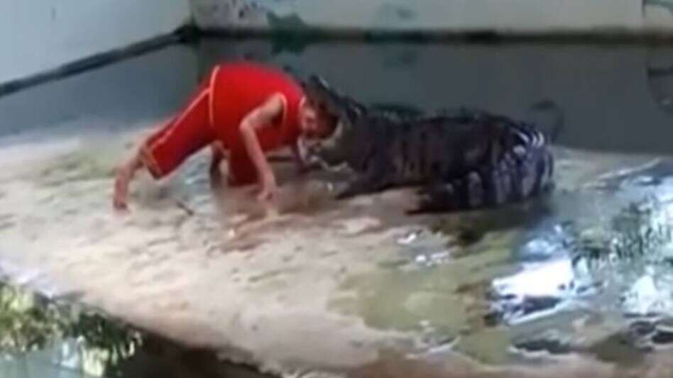 खेल दिखाते दिखाते पानी के दरिन्दे ने दबोचा शख्स का सिर, वायरल क्लिप देख काँप जाएगी रूह