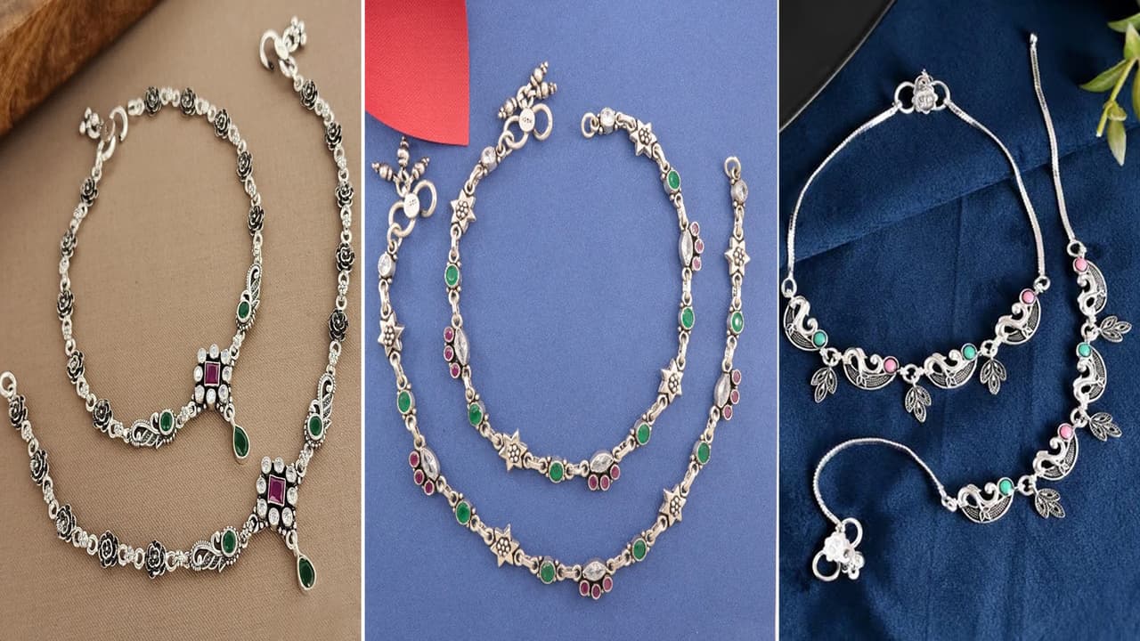 Stone Work Silver Anklet Set: सदाबहार कलर्ड स्टोन सिल्वर एंकलेट, मैचिंग की No चिकचिक