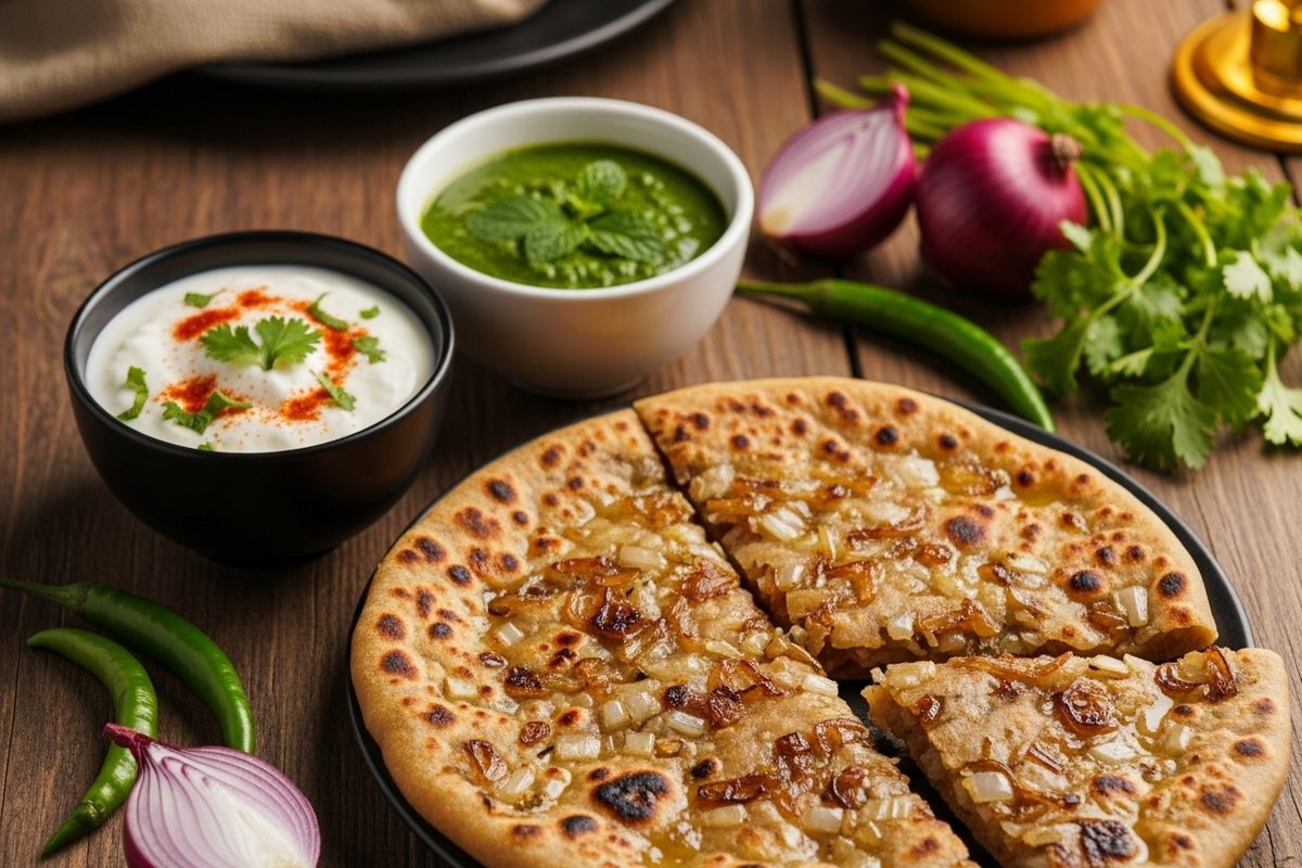 प्याज़ का पराठा उत्तर भारत की लोकप्रिय डिश है, जिसे ताज़े मसालों और प्याज़ से बनाया जाता है. दही, अचार या चटनी के साथ इसका स्वाद और बढ़ जाता है.
