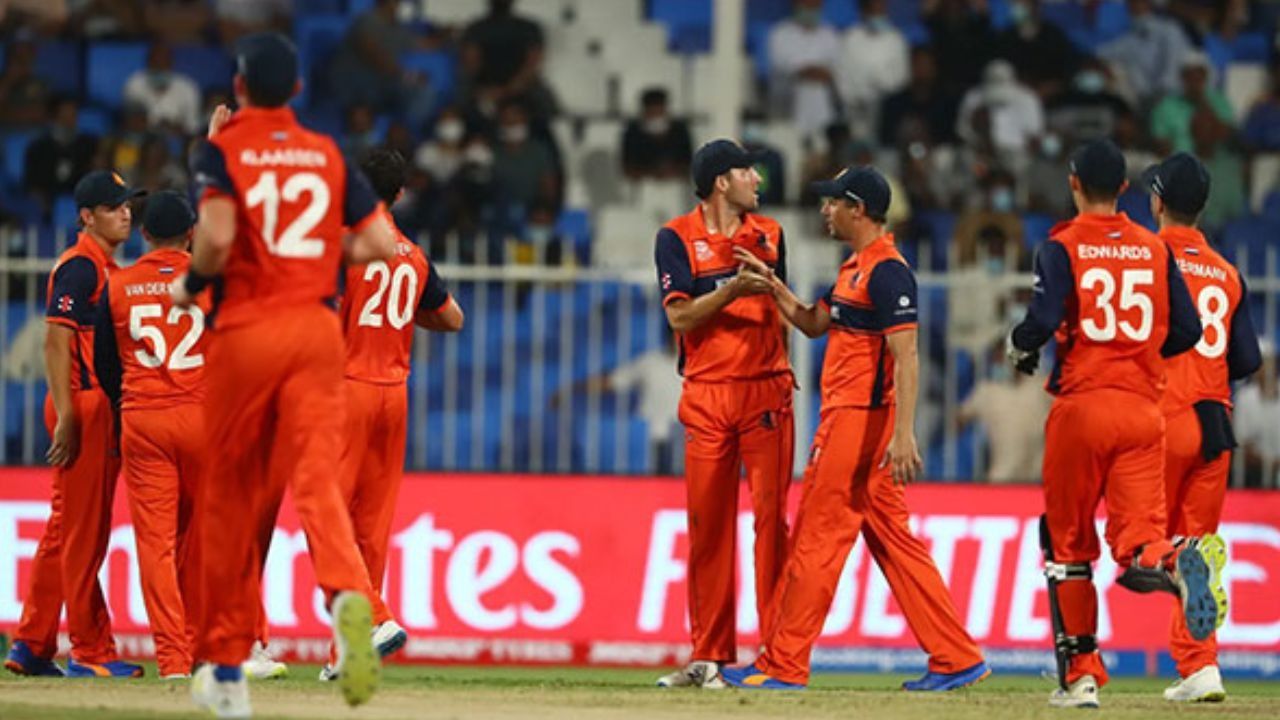 नीदरलैंड - माइकल लेविट, मैक्स ओ’डॉउड, बास डी लीडे, कॉलिन एकरमैन, स्कॉट एडवर्ड्स (विकेटकीपर/कप्तान), जैच लायन कैचेट, लोगान वैन बीक, रूलोफ वैन डेर मेरवे, आर्यन दत्त, काइल क्लेन, पॉल वैन मीकेरेन.