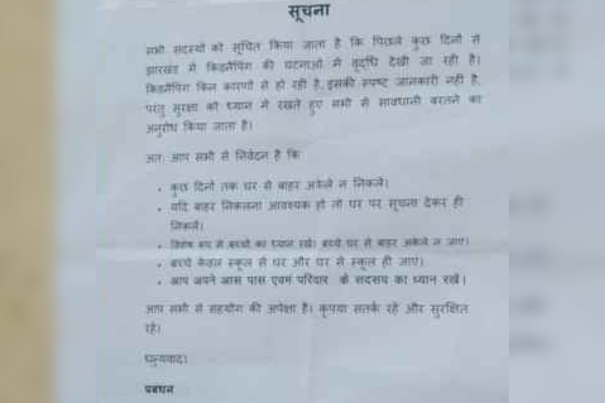 महिलाओं के लगातार गायब होने से बोकारोवासी दहशत में, सावधान रहने का चिपकाया गया नोटिस